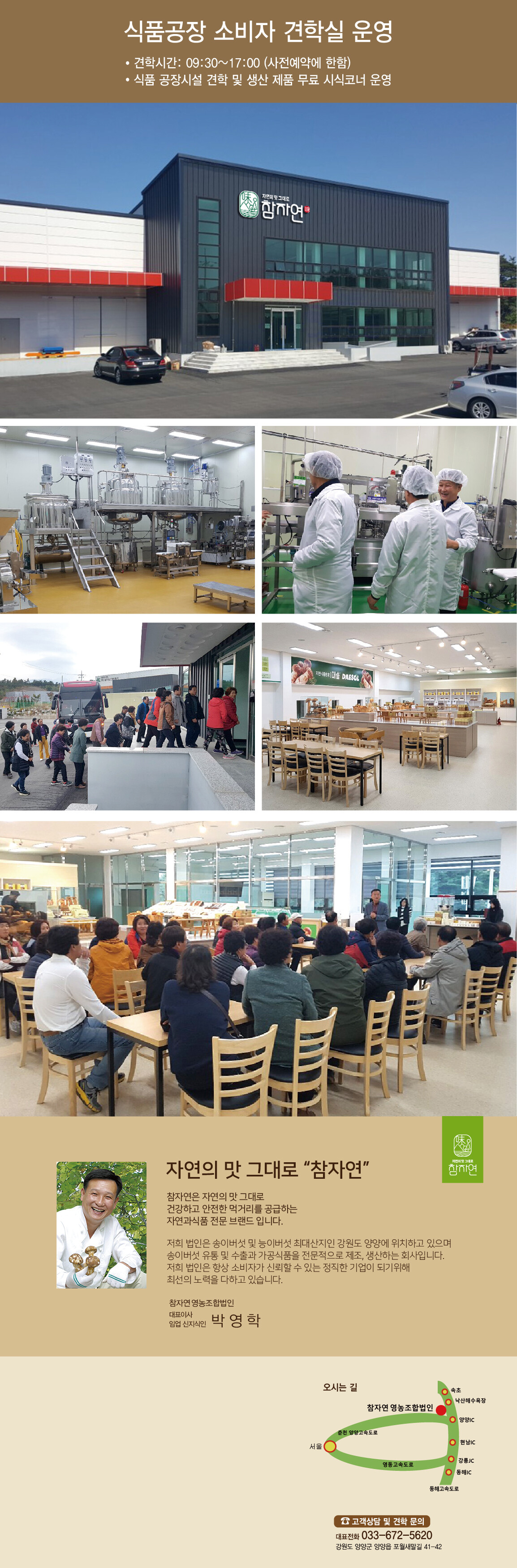 회사명 : 참자연영농조합법인 | 사업자등록번호 : 227-81-15806 [사업자정보확인] | 주소 : 강원도 양양군 양양읍 포월새말길 41-42 참자연영농조합법인